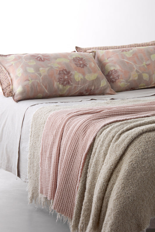 Society Limonta‘s passion for continuous research and for creating something that doesn’t exist yet, led them to the Nid throw, a new classic for the home couture collections. This throw combines waffle weave manufacturing with the ultimate winter yarn: wool. Nid is a warm, elastic and puffy throw, with a strong, tactile feeling. It can be used at the foot of the bed or for relaxing on the sofa. The waffle weave process makes the wool very light, perfect for the milder winter nights.