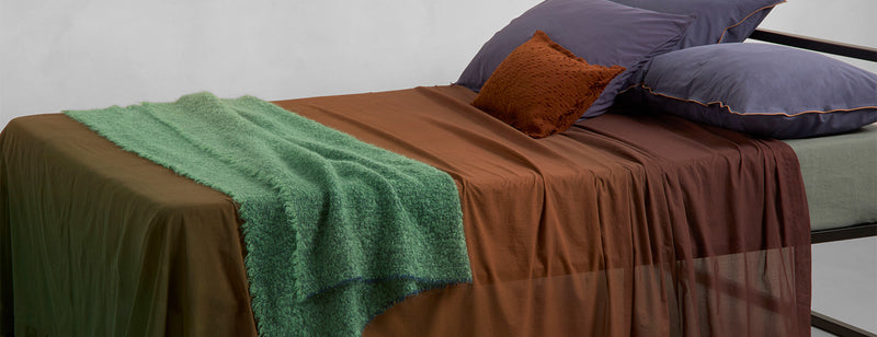 L'ensemble de la collection de linge de lit est renouvelé chaque saison, en puisant des idées et des inspirations dans le monde de la mode. Cela donne des draps aux couleurs vives ou aux tons plus doux, mais toujours assortis aux couleurs neutres qui constituent la base de chaque mix&match. Qu'il s'agisse de draps doubles ou simples, tous sont teintés dans la masse, un processus de fabrication qui donne au tissu des nuances de couleurs changeantes, rendant chaque création unique. À partir des matériaux de base, Society Limonta élabore ensuite différentes finitions. Le lin froissé, par exemple, est également décliné en draps brodés, avec des motifs géométriques ou avec une version macro contemporaine de la broderie sangallo. Le coton, quant à lui, est tissé en deux feuilles douces et légères qui s'assemblent pour former un précieux drap de coton double face à la main particulièrement douce.